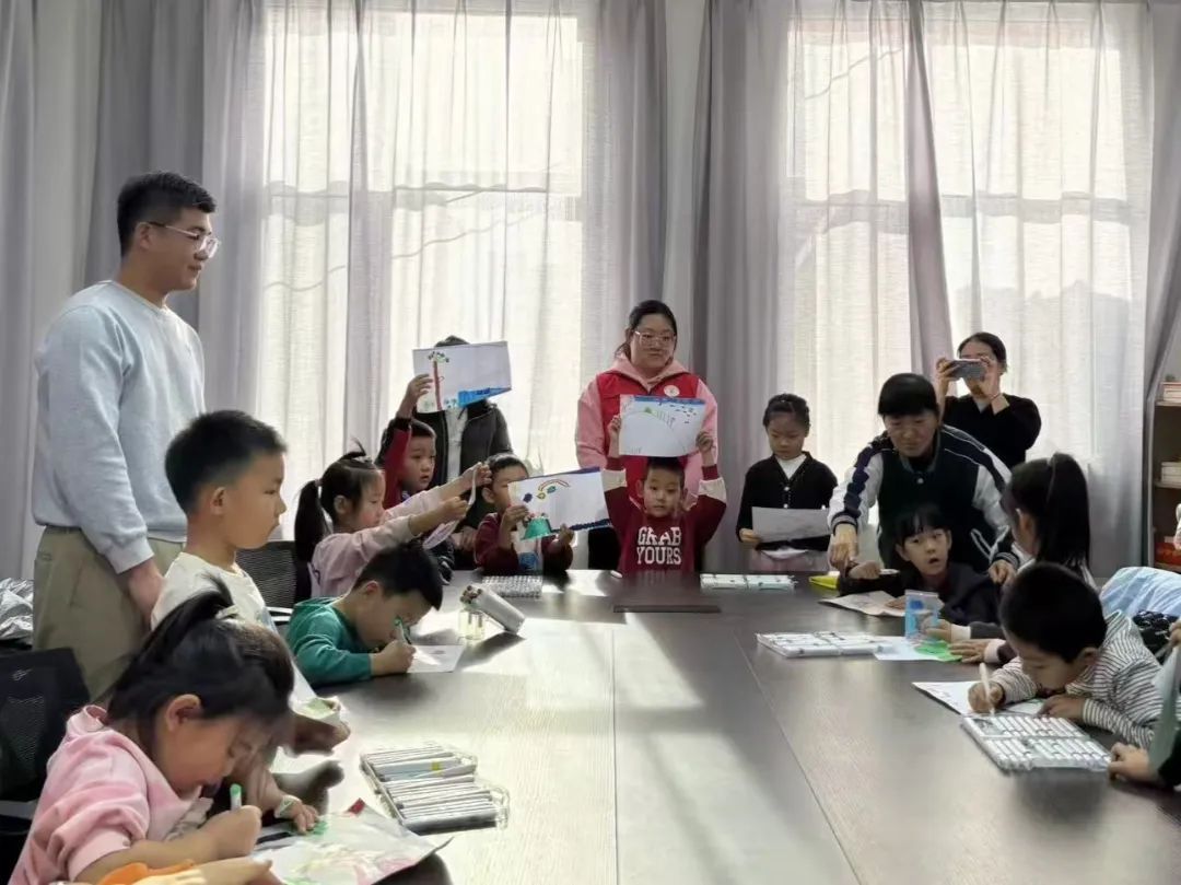 随后,支部党员向小朋友们介绍了常见的防沙治沙方法,如植树造林、封沙育草、设置沙障等,并开展了“探究沙蒿种子在干旱多风情况下生存的原理”“保肥小实验”等趣味实验,向小朋友们直观地表现出沙蒿在治沙方面的突出优势,以及沙化土地肥力下降的后果。知识普及后,支部党员带领孩子们画出了内心丰富的绿色世界和对未来的想象。