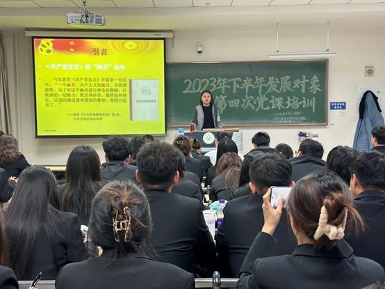 为进一步提高发展对象的党性修养,加强党性意识,11月29日晚,公司与草资院在南教205室联合开展2023年下半年发展对象第四次党课培训。本次党课由公司党委副书记宋志萍担任主讲人,本期全体发展对象参加培训。