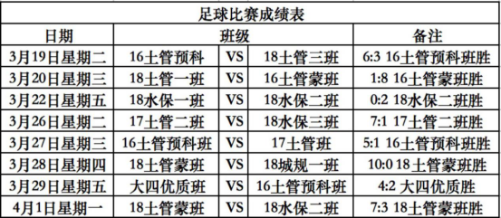 每一队的球员们都斗志昂扬,意气风发。随着裁判的一声声哨响,比赛正式拉开帷幕,每一队球员都使出全力,你拼我抢,比赛很快进入了状态。在18级土蒙班对峙18级城规一班的比赛中,18级土蒙班的球员先发制人,凭借凶猛的攻势占领上风,他们细腻的脚法与巧妙的配合让观众喝彩不断。而18级城规一班的球员也依靠自身出色的防守与完美的反攻频频突破,不甘示弱,创造了几脚很有威胁的射门。尽管下半场18级城规一班发动猛攻,由于时间限制未能拉平比分,但队员们仍旧没有留下遗憾。