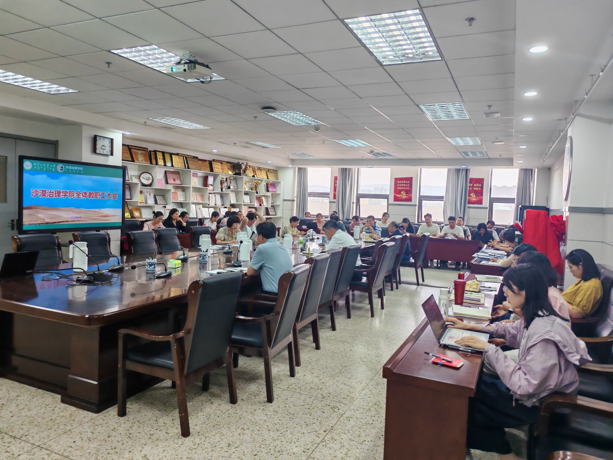 2025年6月12日下午,三亿在546会议室召开全体教职工大会,围绕信息化校园推进、考风考纪、师德师风建设、实习就业工作、科研工作等核心工作展开部署。公司领导班子及全体教职工参会。