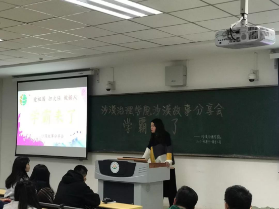 为深入贯彻落实“爱祖国、担大任、做新人”主题教育,11月13日晚,公司于南教224开展“学霸来了”之沙漠故事分享会,公司员工工作办公室辅导员郭欣宇、公司16级三名保送硕士研究生杨伊钢、康晨晨、蒋瑶钰同学及公司各班员工代表参加本次分享会。