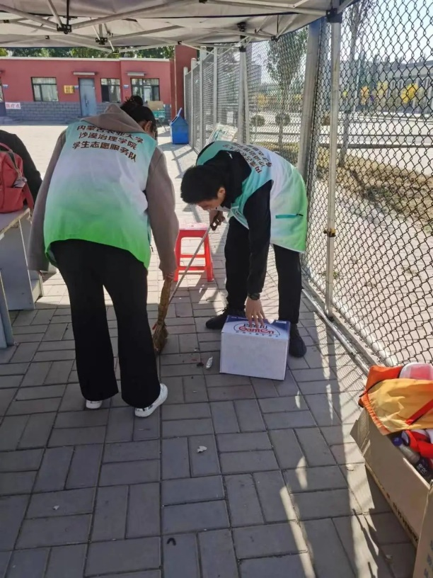 志愿者服务队员们将劳动信念贯彻在行动中,以实际行动为创建文明校园贡献力量。