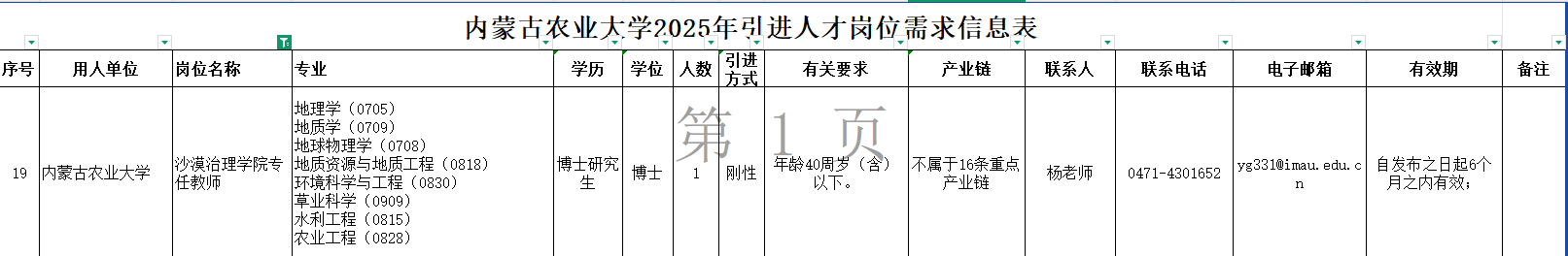 岗位需求信息表